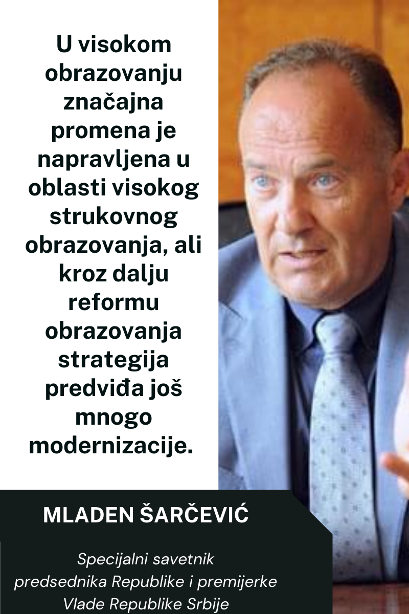 Da nekog ne ostavim nepomenutog, ipak je tendencija da se radi što više na dualnim modelima obrazovanja u Republici Srbiji gde se neposredno privrednici uključuju sa visokoškolskim i srednjoškolskim ustanovama oko potreba za radom i kurikulima koji su Zakonom predviđeni.