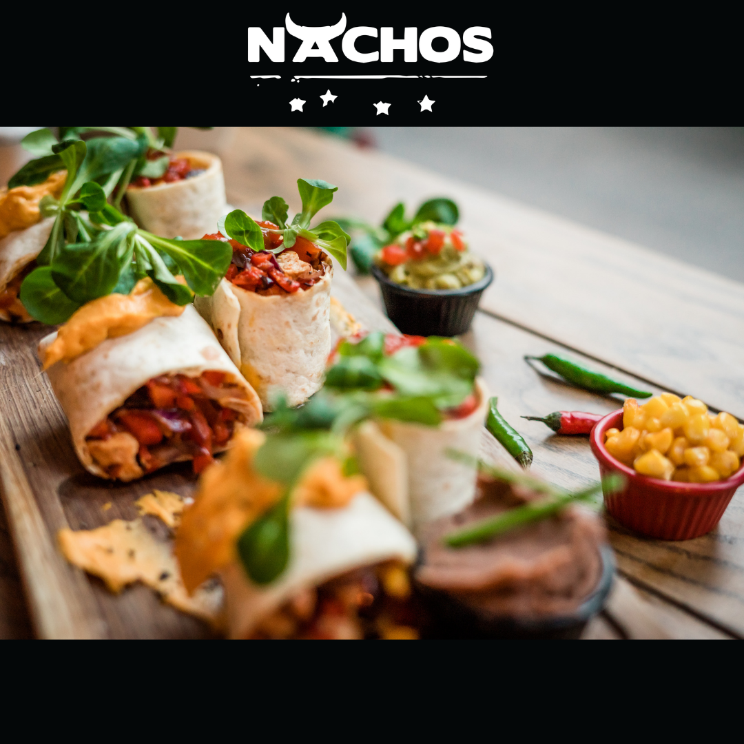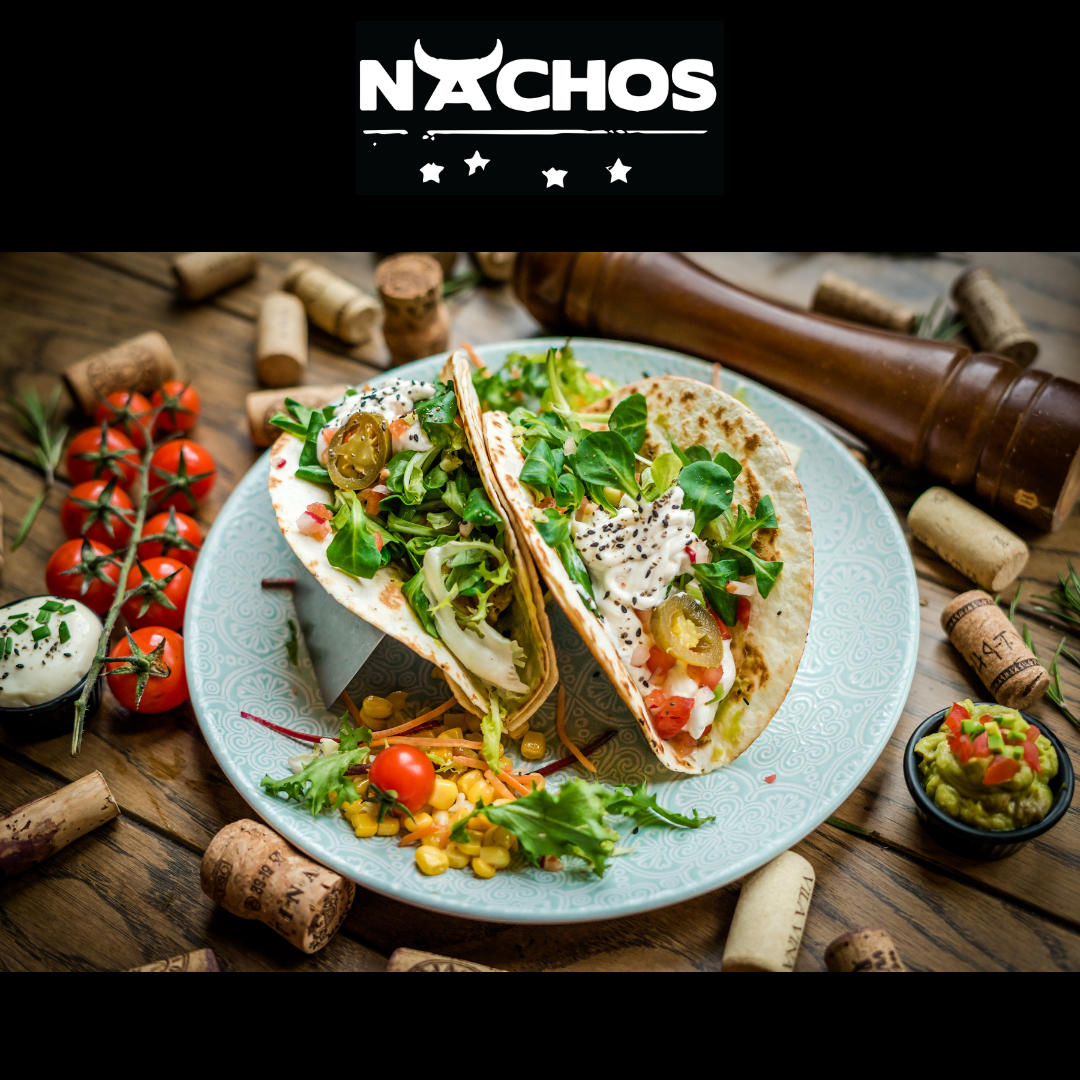 Nachos služi Sangre takos sa grilovanim ramstekom u mirisnom Pico de Gallo i Guacamole sosu ali i Tacos Veracruz sa sporo dinstanom junetinom i karamelizovanim lukom. Tu su i originalni Nachos tacosi sa posebno odabranim odnosom različitih vrsta mesa i Jalapenos paprika.