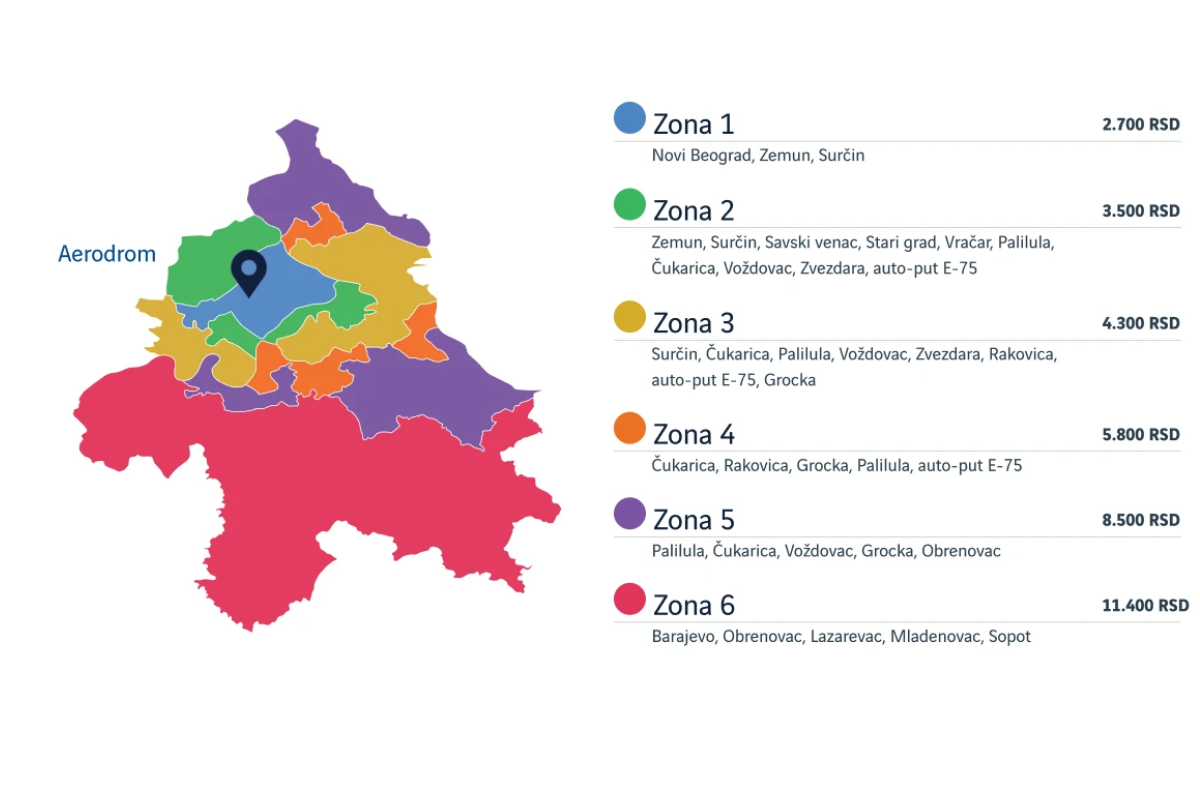 Zona 1 (Novi Beograd, Zemun, Surčin): 2.700 dinara