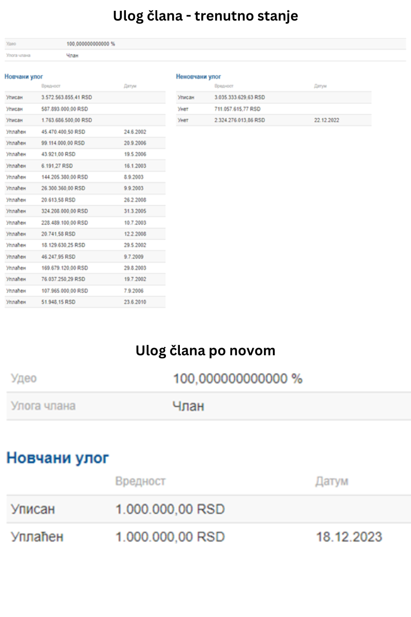 Na isti način, vršiće se i registracija uloga članova (bilo da su društva jednočlana ili višečlana) i odnosiće se i na novčani i na nenovčani kapital/uloge.
