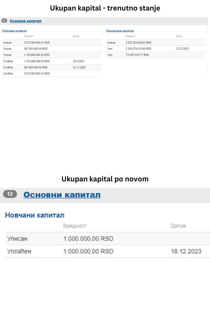 Ovo praktično znači da će, ako je u društvu koje sprovodi povećanje kapitala registrovano više pojedinačnih uplata, registrator prilikom donošenja rešenja (počevši od 02.04.2024. godine) izvršiti brisanje svih tih pojedinačnih uplata i registrovati samo jednu koja će predstavljati zbir svih do tada registrovanih i nove uplate.