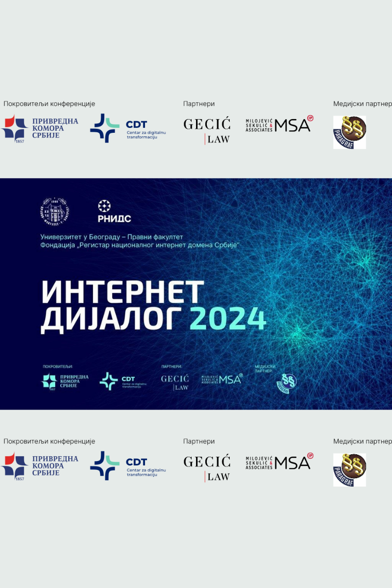 Pravni fakultet Univerziteta u Beogradu i Fondacija „Registar nacionalnog internet domena Srbije“ (RNIDS) 8. i 9. aprila 2024. godine po deseti put će organizovati godišnju konferenciju posvećenu pravu interneta. Ovogodišnji „Internet dijalog“ održava se pod pokroviteljstvom Privredne komore Srbije i njenog Centra za digitalnu transformaciju.